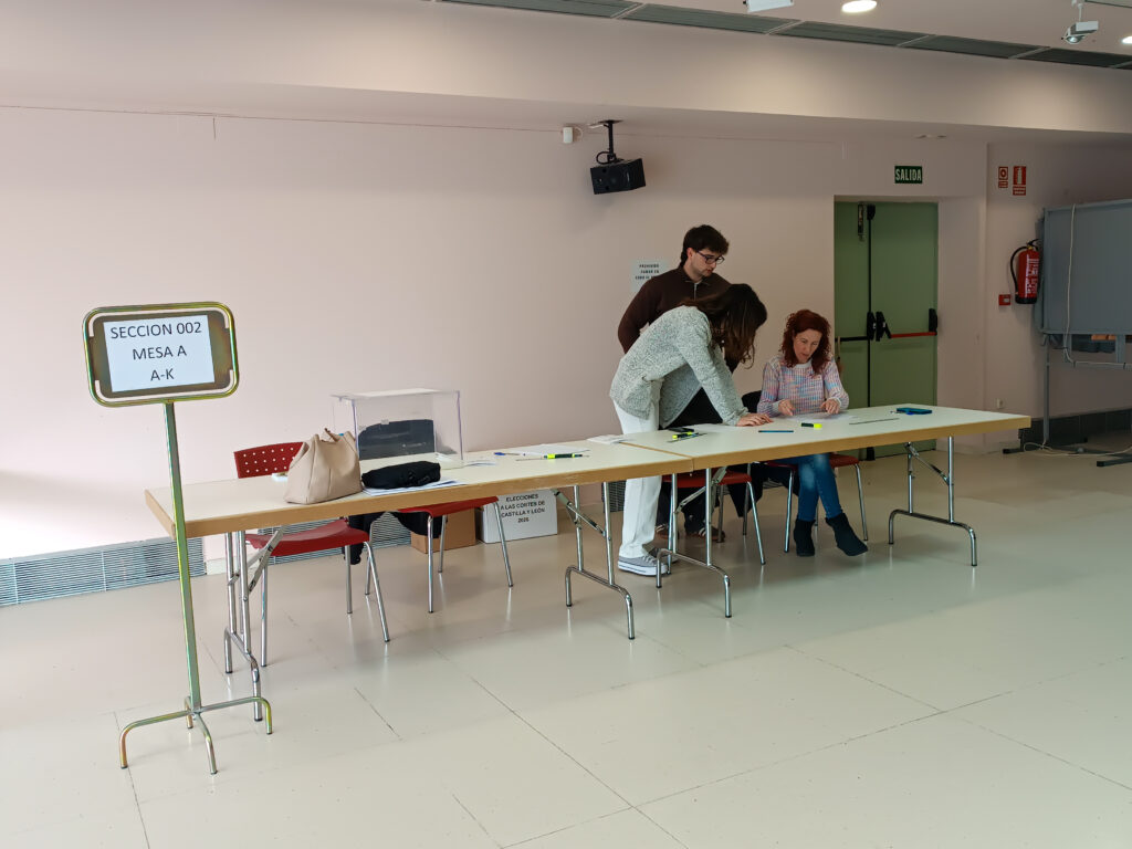 En el Ayuntamiento de Palazuelos de Eresma, donde se ha instalado el colegio electoral de la localidad, la jornada está acompañada por sonidos familiares: páginas pasando, sobres cerrándose y murmullos que se escapan tanto dentro como fuera del edificio. Vecinos, amigos y familiares se reencuentran y aprovechan la expectación del día para intercambiar algunas palabras.