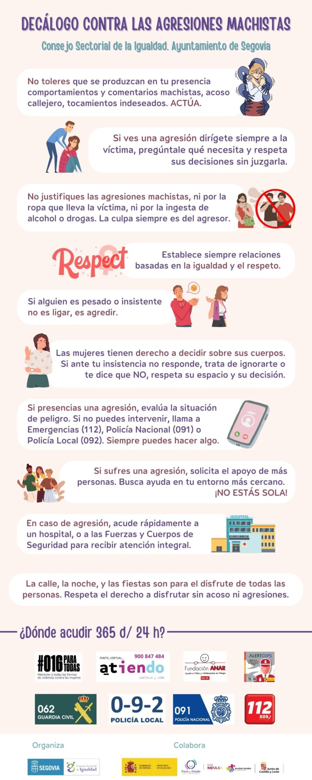 Bajo el lema “Segovia en fiestas sin agresiones machistas”, la campaña la lidera la concejalía de Servicios Sociales e Igualdad junto con el Consejo sectorial de Igualdad.