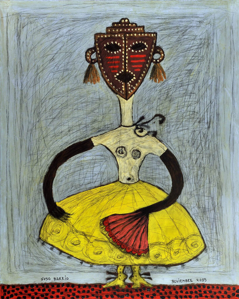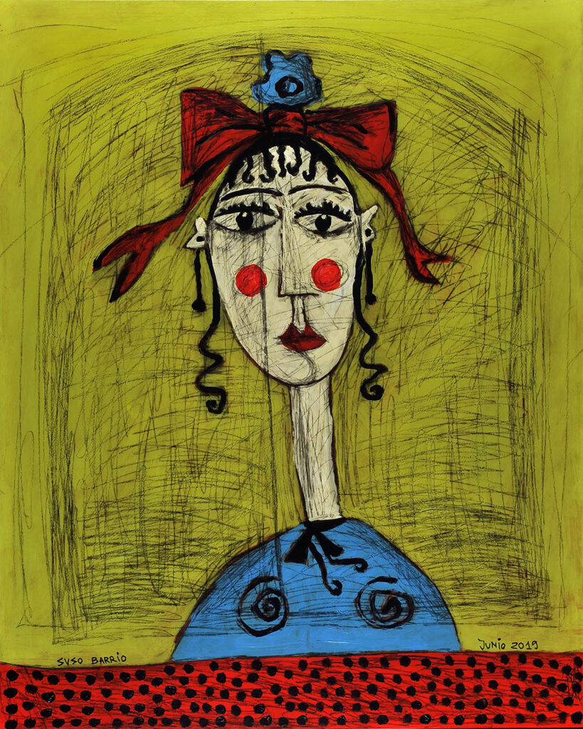 Todos los retratos muestran una característica común: sus protagonistas tienen el torso al descubierto, lo que las acerca al arte primitivo evocado en la pintura de, de nuevo, Picasso o del propio Gauguin. Ese mismo carácter primitivo se mantiene en algunos rostros casi cubistas que muestran unas facciones similares a las de las máscaras africanas, pero actualizadas con elementos que recuerdan un estilo moderno cercano a lo robótico. Rasgos muy alejados en el tiempo y el estilo y, sin embargo, tan armoniosos y complementarios como los que nos muestra el autor, Suso Barrio en su colección.