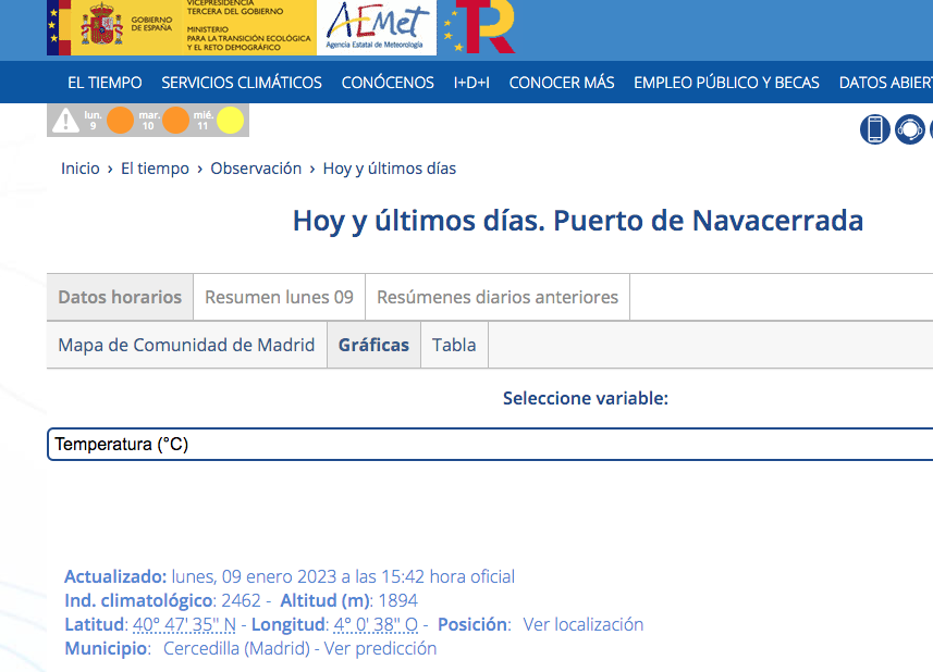 Por ello, un segoviano reclama a la AEMET que la estación de Navacerrada quede asociada a la provincia de Segovia en la página web de la Agencia Estatal de Meteorología.