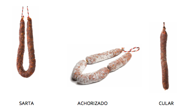 ¿Cuáles son las diferencias y ventajas respecto a otros productos similares? Los tres formatos que ampara la IGP del Chorizo de Cantimpalos son la sarta, el achorizado y el cular. Cada formato presenta sus características particulares. Así, la sarta no presenta flora externa. El tiempo mínimo de curación son 21 días y se presenta en una sola pieza con forma de herradura. El achorizado está totalment
