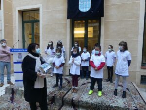 Una decena de alumnos han interpretado en el patio dos villancicos y leído unas palabras para invitar a todos a participar del espíritu navideño. El acto ha finalizado con una foto de familia de la alcaldesa con niños y profesores y otros miembros de la corporación.