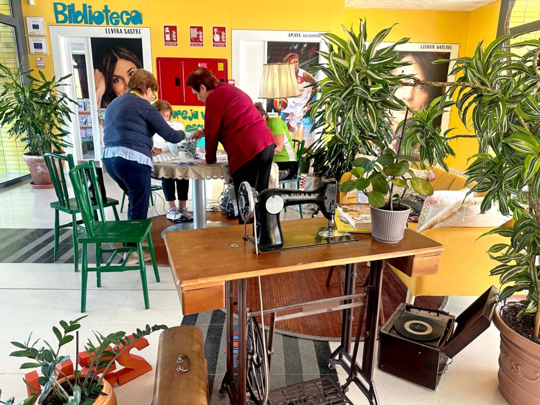 A esto se le suma que, en el colegio de Valverde del Majano, se ha recreado un pequeño salón habilitado con una máquina de coser antigua. Esta, está en perfecto estado de funcionamiento, y se ha puesto a disposición de todas las personas que quieran participar.
