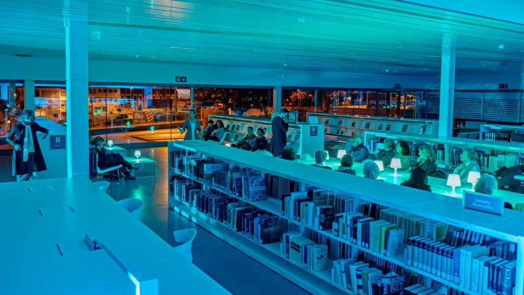‘Una noche en la biblioteca’ se escribió para ser representada en un lugar específico, una sala de lectura, donde los libros reflexionan sobre la existencia y la esencia de la biblioteca. Los espectadores se instalaron en los puestos de lectura de la Biblioteca Pública de Segovia y observaron el «paseo nocturno de los libros», que emocionó a un público entregado a la magistral interpretación de la Compañía Saltatium Teatro bajo la dirección de Sergio Artero. Durante los 45 minutos que dura aproximadamente la pieza, el espacio se convirtió en un elemento esencial de la narrativa.