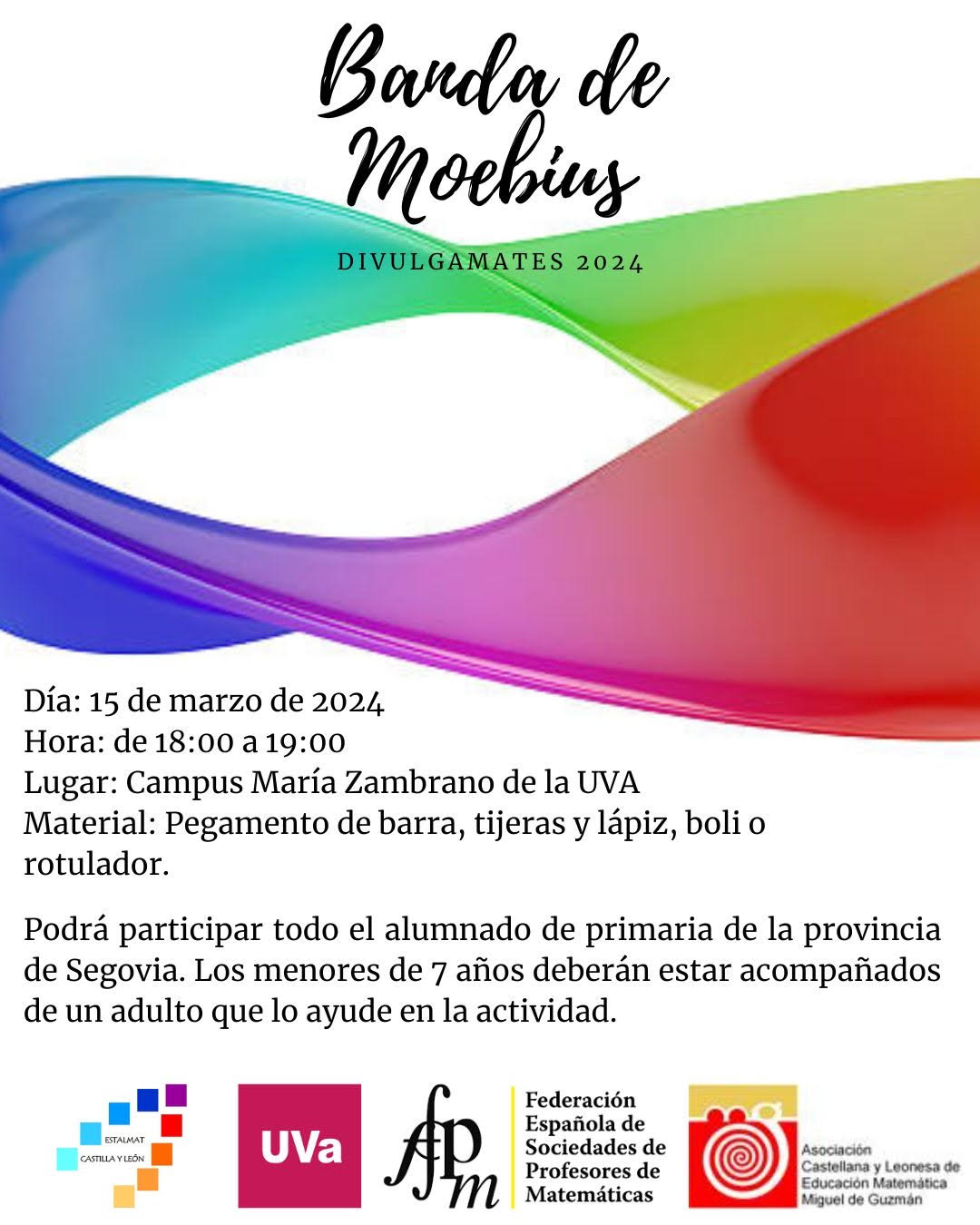 Este viernes, 15 de marzo, tendrá lugar la actividad ‘Banda de Moebius‘, de 18:00 a 19:00 horas en el Campus María Zambrano de la UVa en Segovia.