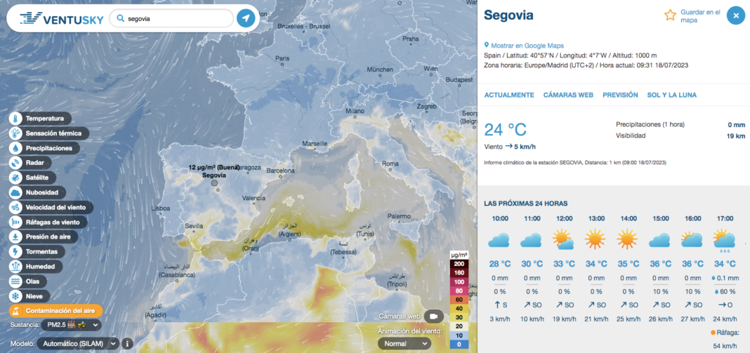 Ventusky, que es como se llama este mapa, es muy intuitivo y permite localizar cualquier punto y los datos que se quieren consultar.