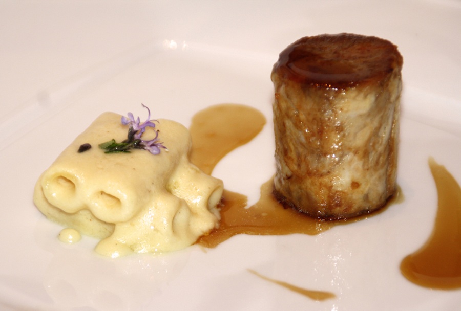 ‘Corderito lechal asado a baja temperatura servido deshuesado en timbal caramelizado’.