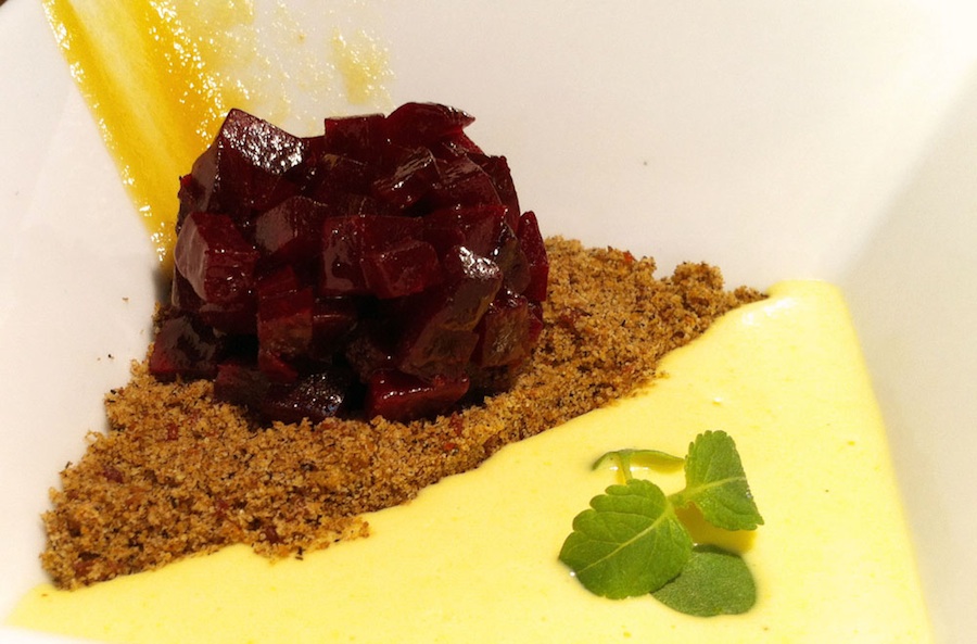 En concreto, el menú ofrece, como aperitivo de bienvenida, ‘Amanece en Sanchonuño” con productos de la hortofrutícola segoviana Huercasa. Una Tarta de remolacha, crema de mazorca de maíz, coulis y tierra de endibia.