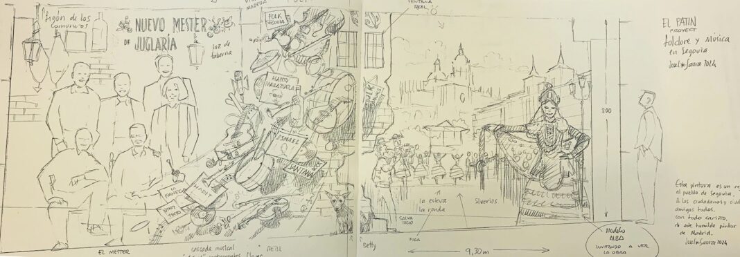 Ya nos podemos ir haciendo una idea de cómo quedará el mural de López Saura en Segovia, en uno de los pasadizos que desemboca en uno de los corralillos más conocidos.