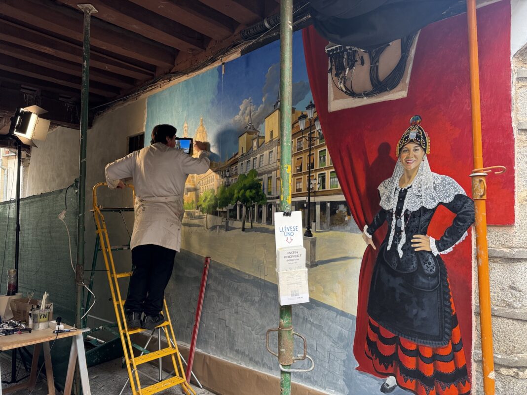Así, la pintura mural llenará de color e historia la travesía del patín, un pasadizo con techo que comunica la calle Herrería con el patio Patín y la calle Infanta Isabel.