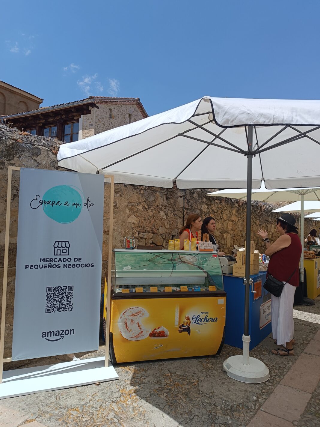 Amazon también ofreció a los pequeños comercios de Pedraza la posibilidad de darse a conocer en este ansiado día festivo. Por ello, el Mercado de pequeños negocios ‘España a un Clic’ también contó con la participación del Obrador de Pedraza, que aportó el postre a la comida; José Álvaro, maestro forjador y carpintero; y Hadaharo, con sus espectaculares diseños pintados a mano.