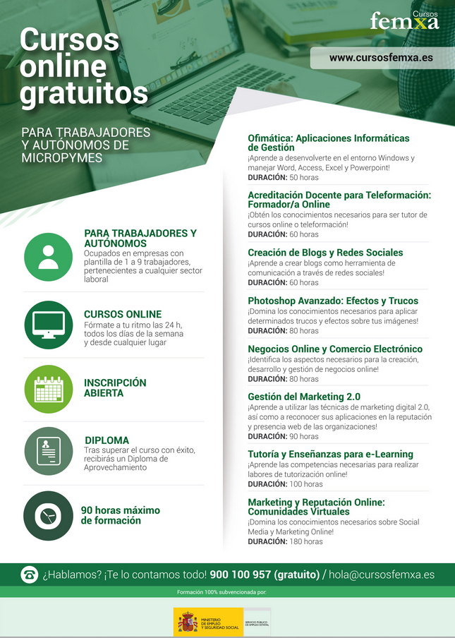 El Ministerio de Empleo y Seguridad Social ha puesto en marcha una convocatoria de formación con más de 1.000 plazas en cursos gratuitos online dirigidos a trabajadores, autónomos y emprendedores de empresas pertenecientes a cualquier sector laboral.