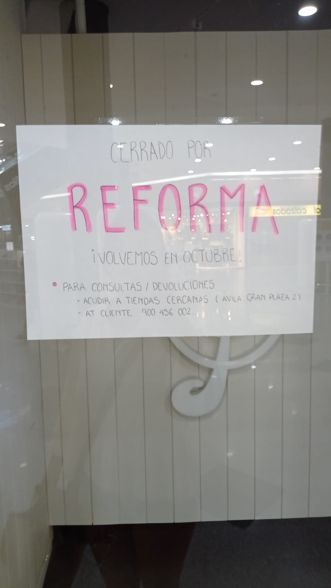 Según un cartel situado en sus cristaleras, los cambios y devoluciones se podrán realizar en las tiendas más cercanas (Ávila, Madrid o Valladolid), o si son compras online en Correos.