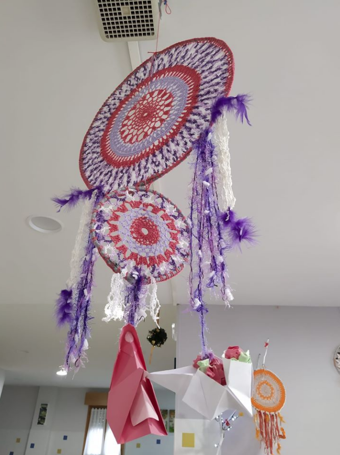 A la fase definitiva también paso la creación de ganchillo y origami creado por los residentes y trabajadores de la Residencia La Alameda de Nava de la Asunción, del Área de Asuntos Sociales de la Diputación.