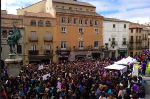 Una multitudinaria manifestación ha teñido de morado el centro de la ciudad con motivo de la celebración del 8 de marzo, Día Internacional de las Mujeres. Cerca de 9000 personas, según las primeras previsiones de la Policía Local, han secundado una de las marchas reivindicativas más numerosas que se recuerdan en Segovia en los últimos  años. El inicio de la manifestación congregó en la plaza del Azoguejo a miles de personas, que se dirigieron hacia La Cárcel_Segovia Centro de Creación, espacio cultural municipal que en tiempos fue prisión de mujeres, donde finalizó el recorrido.
