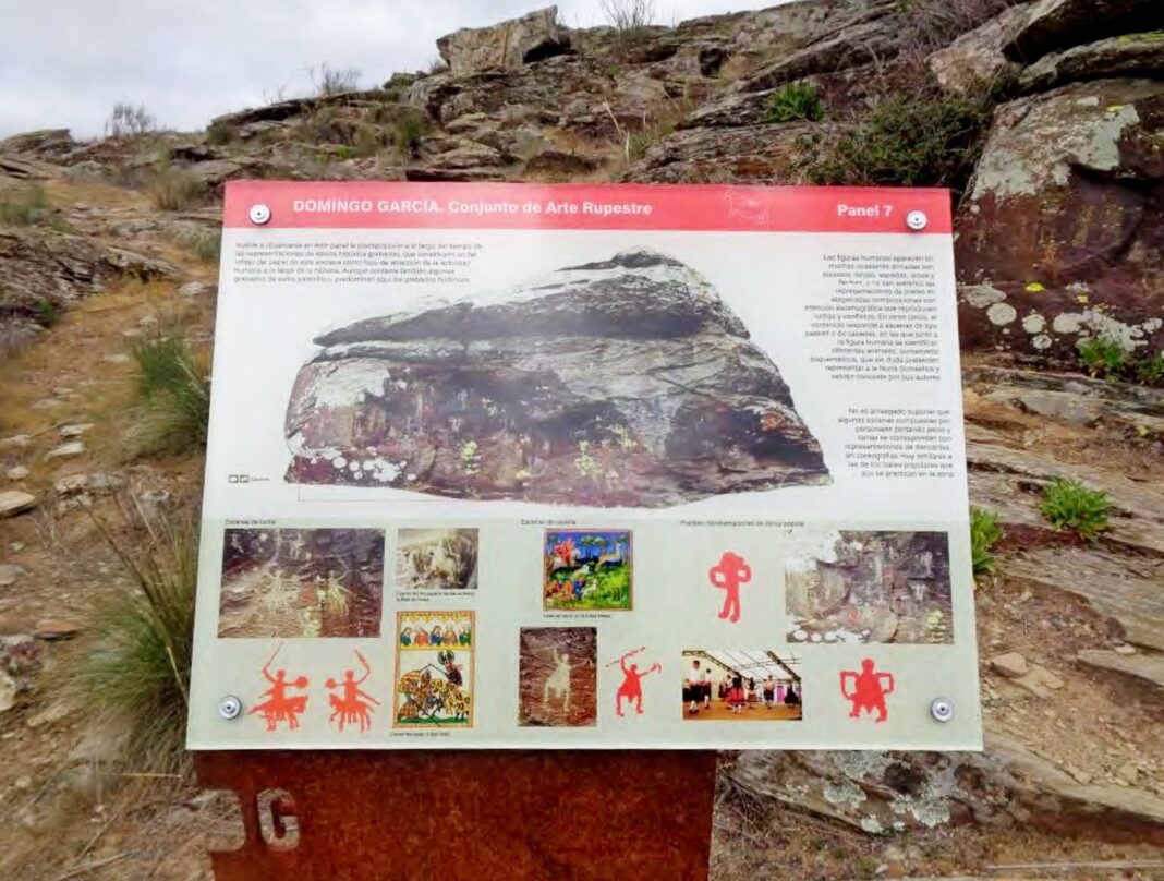 En relación con esta última técnica, cabe destacar que el conjunto de arte rupestre al aire libre del ‘Cerro de San Isidro-Cuesta Grande’, en el término municipal de Domingo García, es un enclave arqueológico declarado Bien de Interés Cultural que, junto a los de Siega Verde (Salamanca) y Foz Côa (Portugal), es de gran importancia en la península Ibérica y Europa por la escasez de testimonios de estas características. En estos grabados se reconocen dos etapas: la más antigua correspondiente al Paleolítico Superior, caracterizada por representaciones naturalista de animales -caballos, cápridos, cérvidos y bóvidos-, encuadrada cronológicamente en torno a los 15.000 años a.C.; y la segunda etapa, que se sitúa cronológicamente en un amplio periodo que va desde la Edad Media hasta época moderna, con diversos tipos de representaciones según el momento histórico y que comprende escenas de lucha, caza y pastoreo.