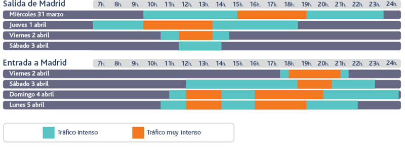 La intensidad máxima de tráfico se registrará en la AP-6 en los siguientes tramos horarios: