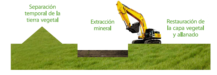 En primer lugar, explica la Compañía, se separa «la capa productiva del suelo para realizar el cribado del material a una profundidad en torno a 1 metro y medio, por lo que la afección al paisaje durante su actividad es mínima».
