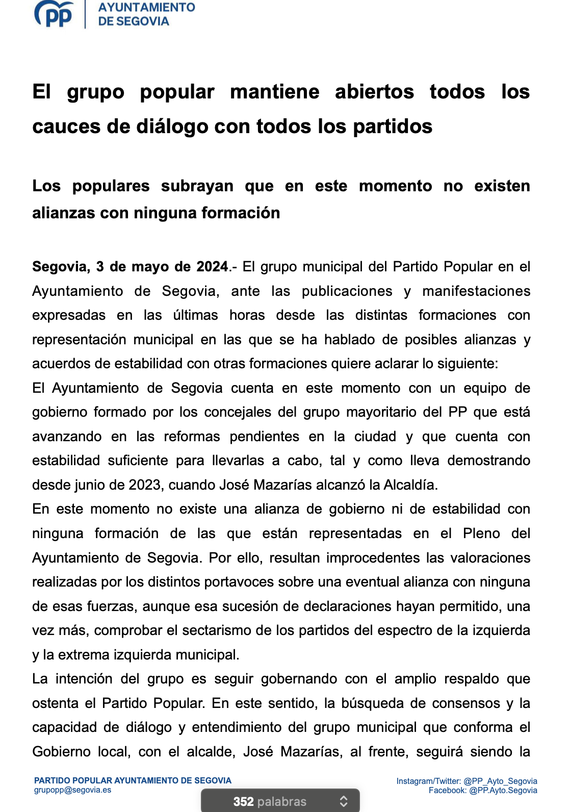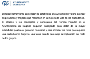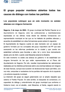A continuación, reproducimos íntegros el comunicado y la nota de prensa del Grupo municipal Popular, ambos enviados a esta redacción en las últimas horas