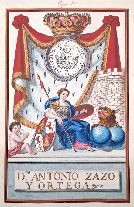 El documento fue expedido en nombre del rey Carlos IV por el cronista y rey de armas Antonio Zazo y Ortega, con la intervención del calígrafo Torcuato Torío de la Riva. Se trata de un certificado de armas y privilegio perpetuo de nobleza a favor de los herederos de Laureano Ortiz de Paz, que permitía el uso legal de blasones y símbolos heráldicos.