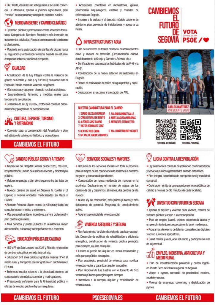 El PSOE ha presentado en Segovia su programa electoral provincial, un documento que reúne más de 200 medidas centradas en el refuerzo de los servicios públicos, el acceso a la vivienda, el empleo y la lucha contra la despoblación.