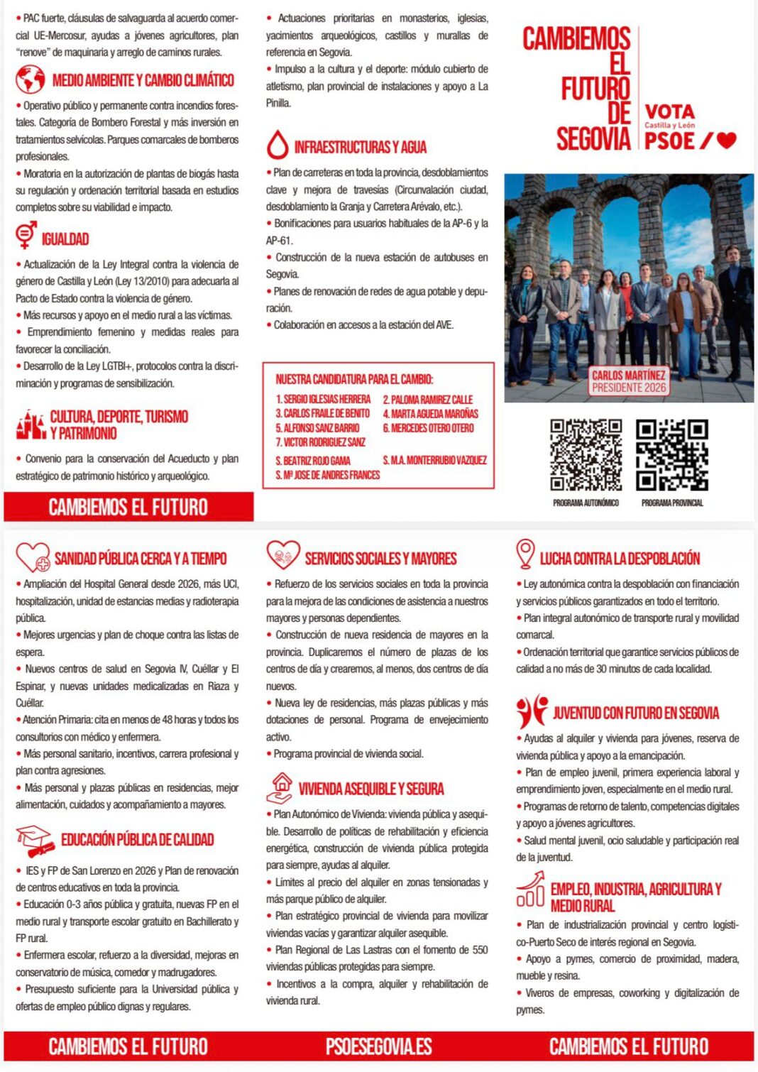 El programa incluye además medidas en vivienda, con un plan para aumentar la vivienda pública y facilitar el acceso al alquiler, especialmente para jóvenes, así como propuestas en educación, igualdad, servicios sociales y apoyo al medio rural.