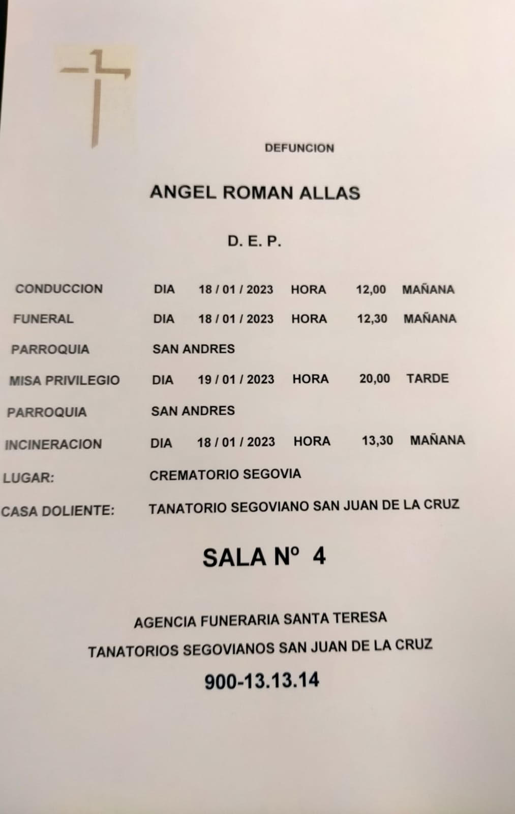 El funeral por Ángel Román Allas es este miércoles, 18 de enero, a las 12.30 horas en la Parroquia de San Andrés.