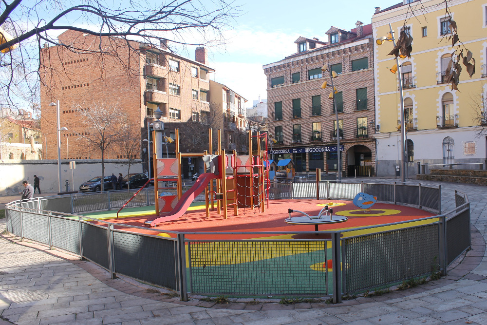 El área de juego de la plaza de Somorrostro es una zona muy utilizada y frecuentada por las familias segovianas. A partir de ahora se encontrarán con un espacio totalmente renovado en el que se ha mejorado la seguridad de los más pequeños.