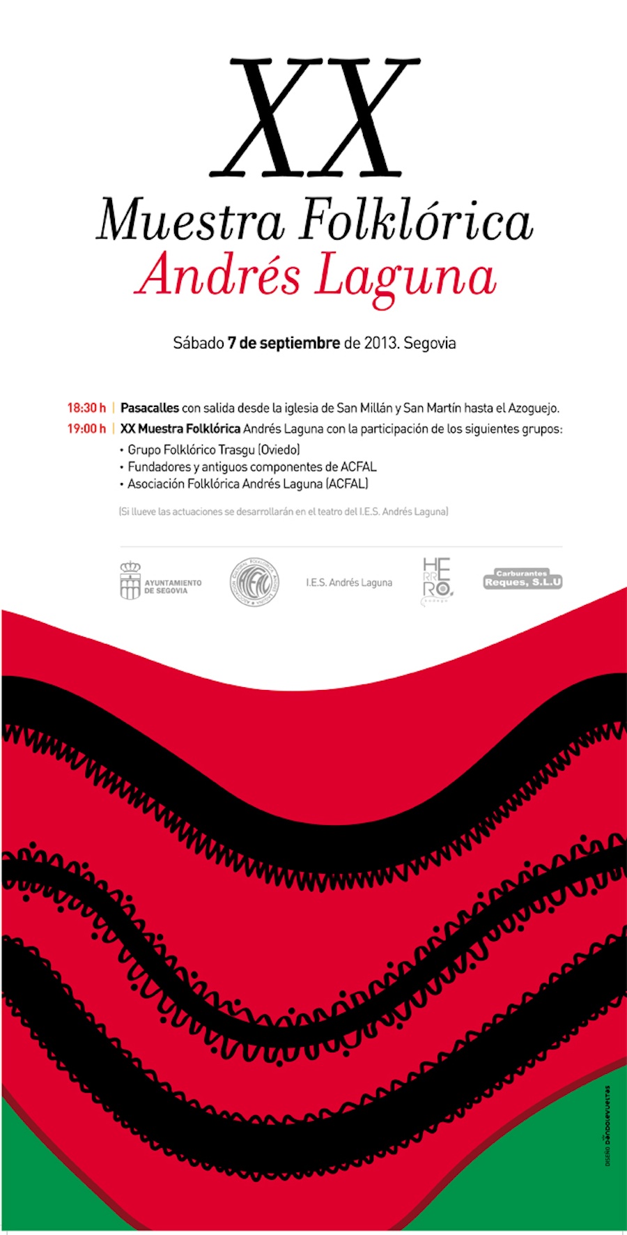 La Asociación Cultural Folklórica Andrés Laguna (ACFAL) celebra el próximo 7 de septiembre a las 19:00 horas en la Plaza del Azoguejo, su XX Muestra Folklórica como colofón de la asociación tras un año cargado de actos folklóricos. El acto, vendrá precedido por dos pascalles que comenzarán en las inmediaciones de la Iglesia de San Millán y en la de San Martín.
