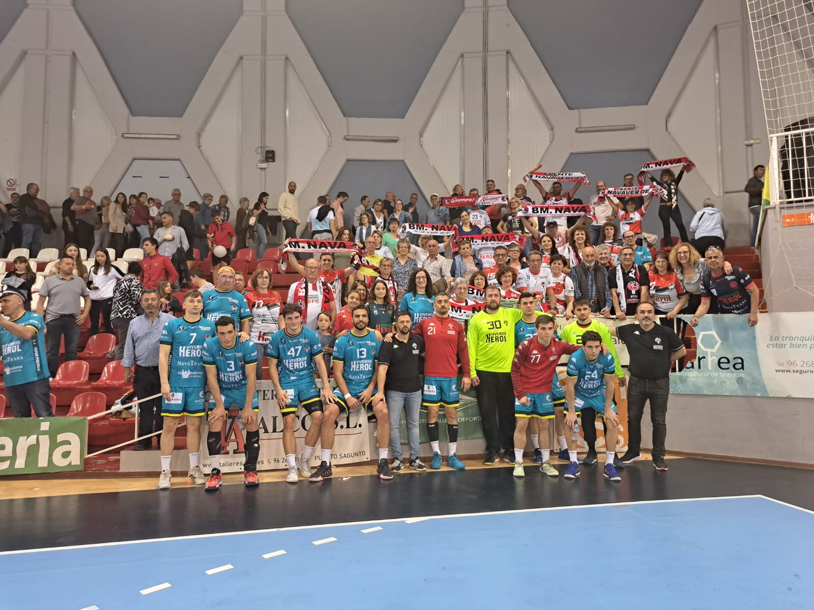 Los naveros, con su gente en las gradas de Sagunto /BM Nava