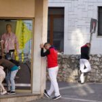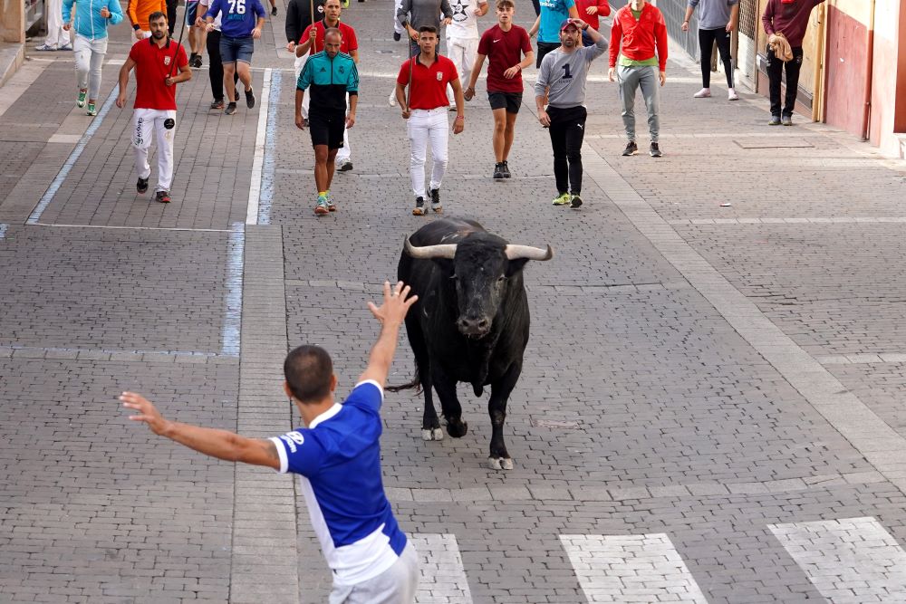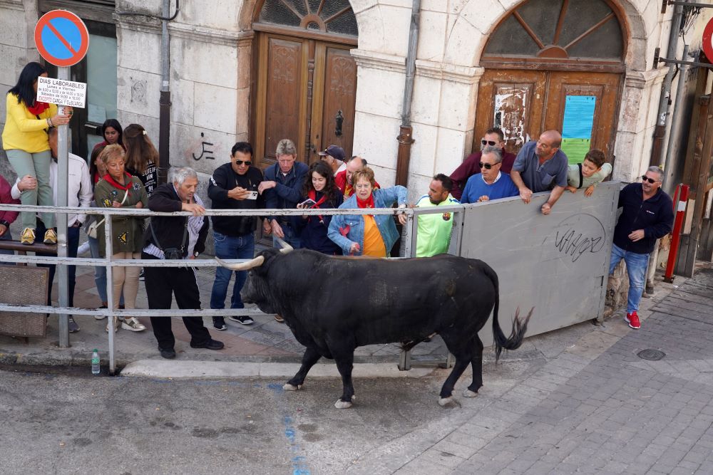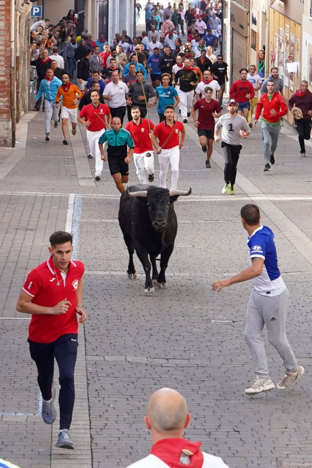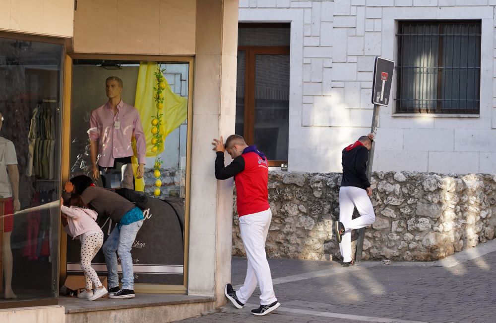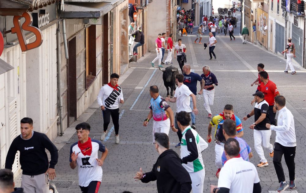 Buena bajada por la colina para acceder al Embudo, la transición entre el traslado por el campo y el encierro urbano. Ya en las calles de la villa, la manada se fue disgregando, con dos astados que quedaron rezagados y, al igual que ocurrió en la jornada anterior, obligaron a corredores y pastores a emplearse a fondo hasta poder cerrar las puertas del coso cuellarano y dar por concluido el encierro.