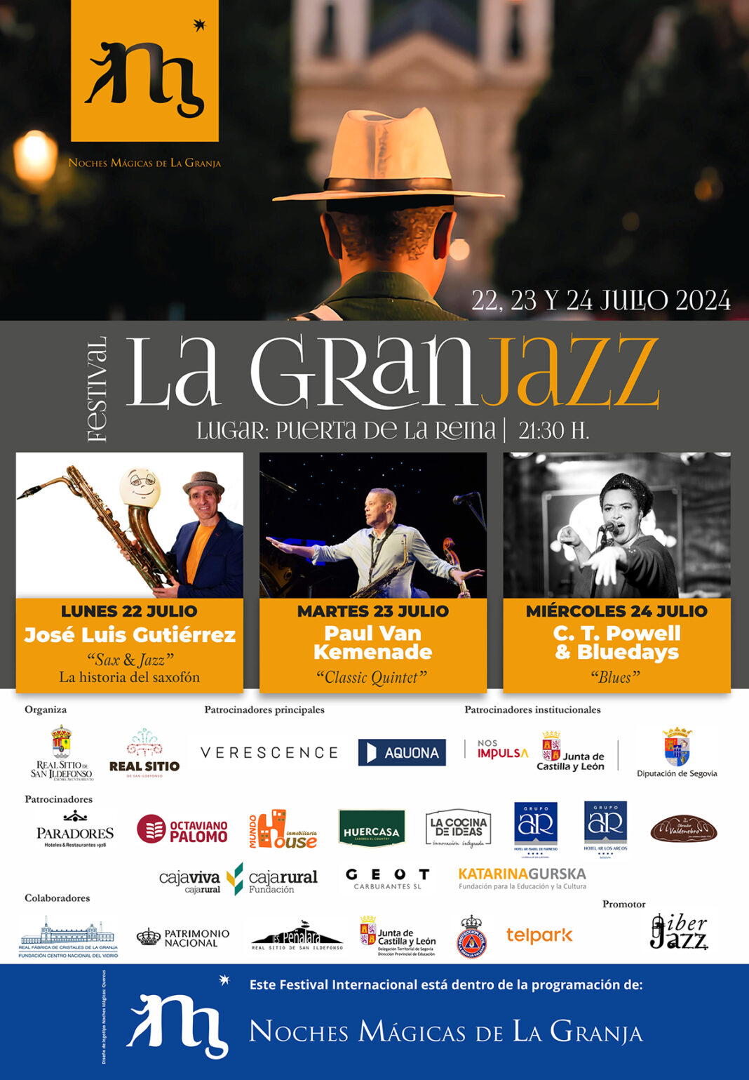 Grandes figuras del jazz en una nueva edición de ‘La GranJazz’ en La Granja de San Ildefonso. La Puerta de la Reina será el escenario que acogerá desde este lunes 22 de julio al miércoles 24 los espectáculos que conforman el programa de esta nueva edición.