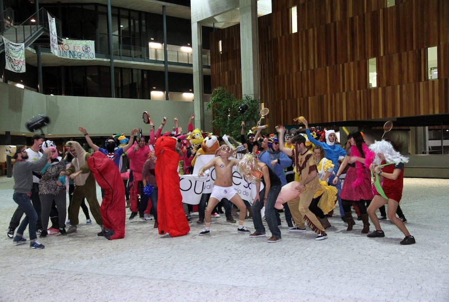 La locura se ha apoderado del ágora del Campus María Zambrano de Universidad de Valladolid en Segovia a ritmo del fenómeno Harlem Shake. Alrededor de 60 estudiantes acudieron a la convocatoria creada a través de redes sociales para grabar su particular respuesta a este fenómeno de masas que está inundando la red de Youtube con ejemplares de este extraño baile.