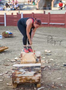 Fotos: Julia Martínez durante una exhibición de corta de troncos en Valsaín/ Pedro de la Peña