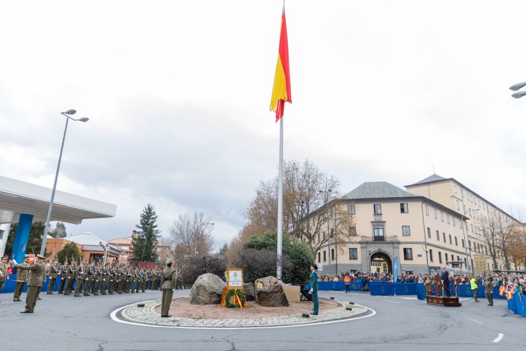 Bajo los acordes del Himno Nacional, efectivos de las Fuerzas Armadas y de los cuerpos de seguridad han procedido al izado de la bandera, que desde este 20 de diciembre preside este enclave como expresión de identidad, respeto y valores compartidos.