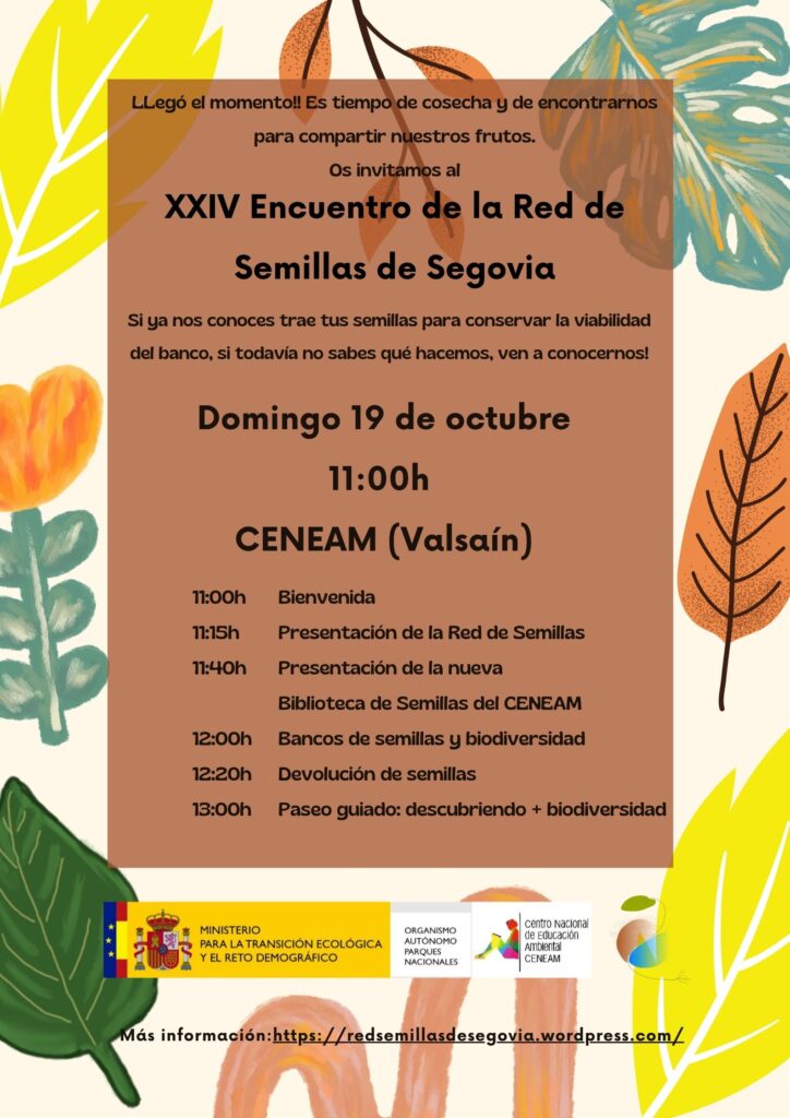 Desde la Red de Semillas de Segovia han organizado su XXIV Encuentro de la Red para la conservación de semillas tradicionales, que se llevará a cabo el domingo 19 de octubre en Valsaín. Este encuentro de otoño, es uno de los más importantes para el banco de semillas. Habrá oportunidad de devolver algunas muestras de las semillas repartidas en encuentros anteriores y así contribuir a mantener viva la biodiversidad.