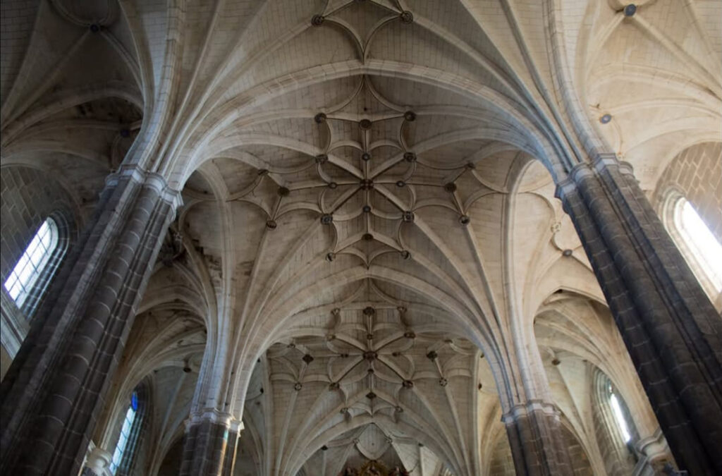 El interior del templo no desmerece su imponente exterior. La iglesia se organiza en una nave central y dos laterales, sostenidas por ocho robustas columnas de granito. Sobre ellas se alza una bóveda construida con ladrillo macizo y cal, que refuerza la sensación de amplitud y solidez del conjunto.