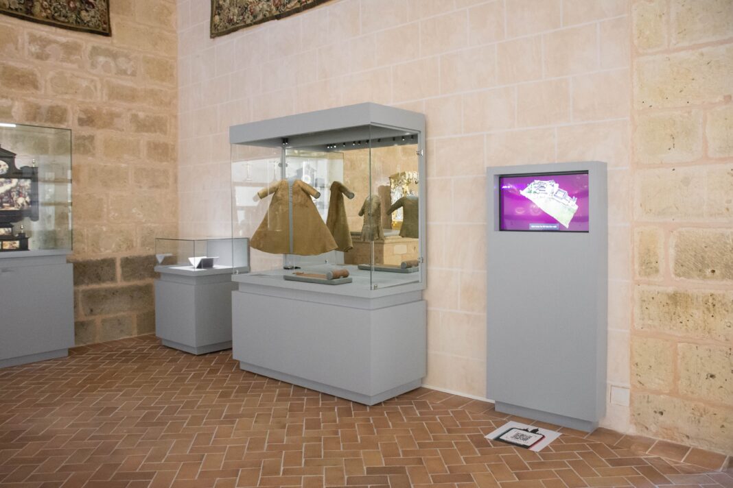 Un audiovisual junto al expositor de los tejidos reproduce la historia del Infante don Pedro, hijo del rey Enrique II de Trastámara desde su muerte en 1366, el traslado de sus restos a la antigua capilla de Santa Catalina en 1558 y el descubrimiento de las vestimentas y los tres restos óseos en 2019. Se introducen recreaciones en 3D de cómo sería la antigua catedral a finales del siglo XV y fotogrametrías para visualizar, con todo detalle, el tejido del conjunto único de indumentaria medieval.