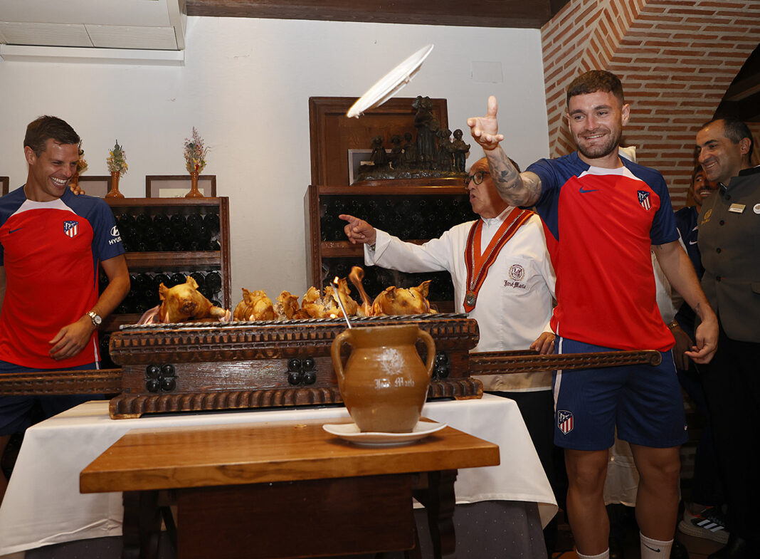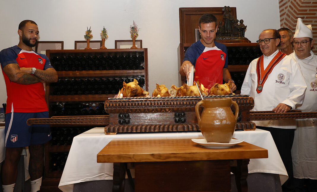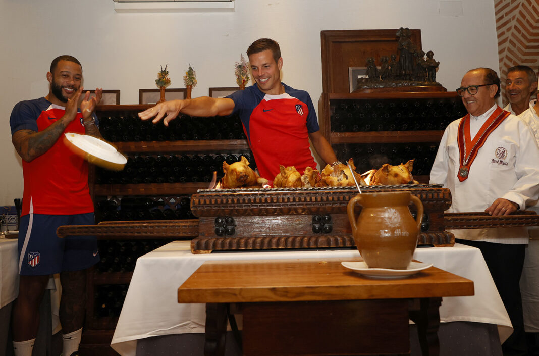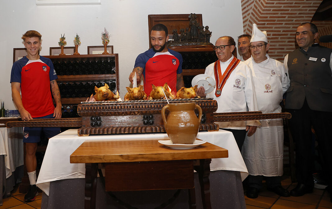 El emblemático restaurante segoviano acogió la tradicional cena de pretemporada. Jugadores y cuerpo técnico degustaron el cochinillo Marca de Garantía de Segovia. Cumpliendo la tradición, el cochinillo se partió a la manera tradicional y, para ello, los protagonistas fueron Memphis Depay y Pablo Barrios, junto a las nuevas incorporaciones César Azpilicueta Javi Galán.