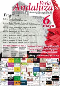 El próximo sábado, 6 de mayo, el barrio de San Lorenzo celebrará su Feria Andaluza 2017, organizada por la Asociación Cultural de Peñas.