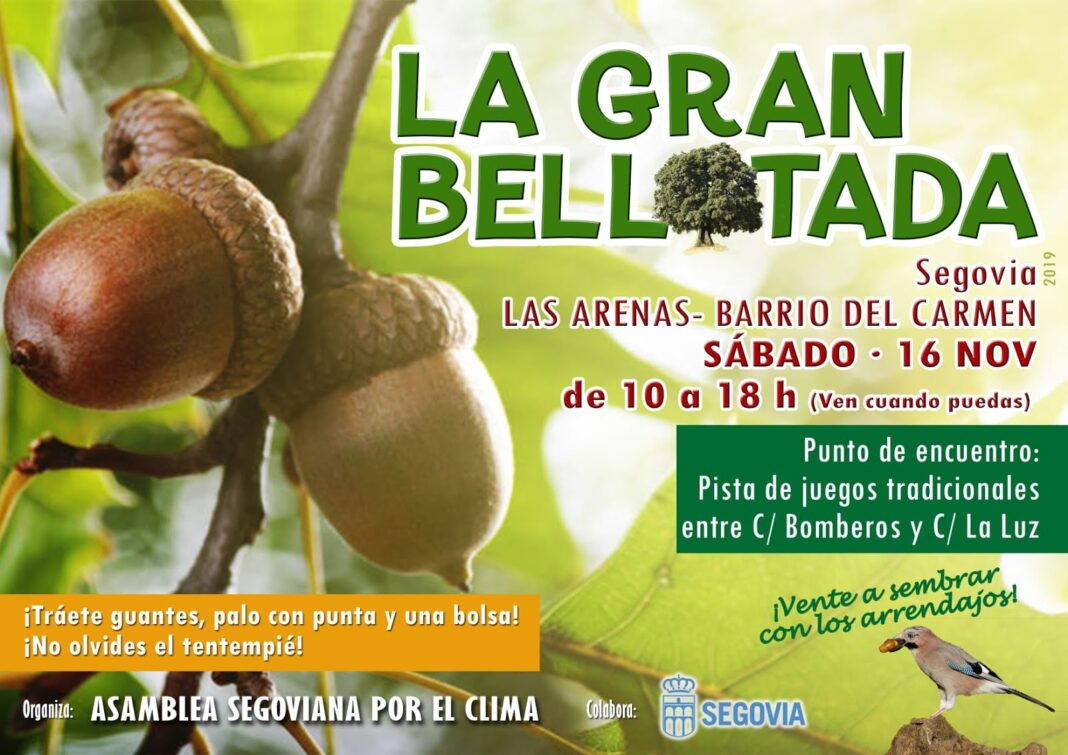 La Asamblea Segoviana por el Clima en colaboración con la sección municipal de Parques y Jardines de la Concejalía de Medio Ambiente organiza la plantación y siembra de semillas, bellotas de encina procedente de las áreas de Revenga y La Losa, en las laderas de las fincas municipales contiguas al camino de las Arenas, laderas de la margen izquierda del rio Eresma.
