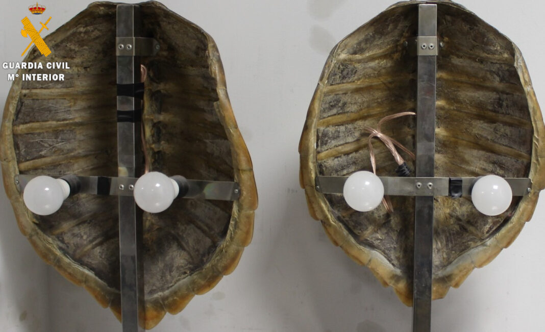 La Guardia Civil de Segovia ha localizado e intervenido dos caparazones de tortugas Carey en un establecimiento hostelero de Segovia. Los caparazones se empleaban como pantallas de sendas lámparas que formaban parte de la decoración del local de ocio.