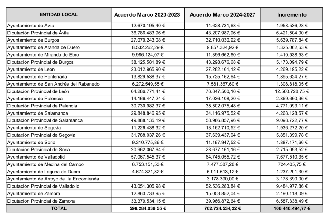 El nuevo acuerdo asume un incremento de 106,44 millones de euros con respecto al presupuesto final del acuerdo del período 2020-2023. Es el 17,85 % más para reforzar los servicios sociales prestados por los municipios de más de 20.000 habitantes y por las diputaciones provinciales.