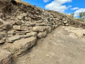 La muralla cuenta con un centenar de metros de longitud, más de siete metros de espesor y una atura conservada intacta de casi dos metros.