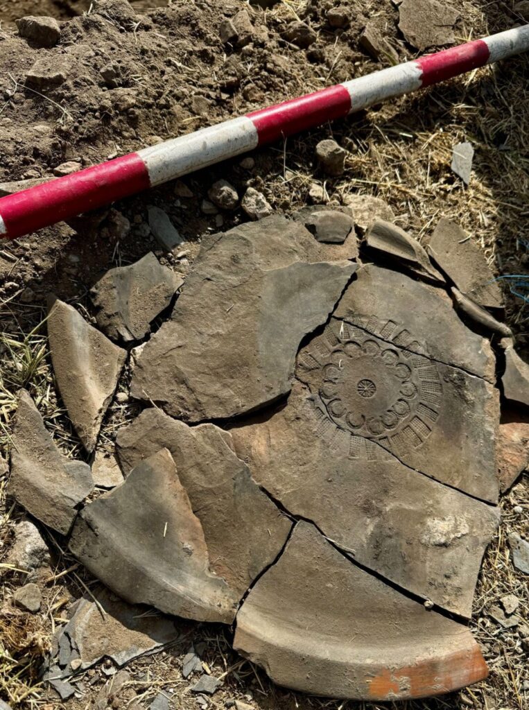De entre todas las piezas halladas en la última campaña de excavaciones, recién finalizada, destaca un plato ricamente decorado de cronología tardorromana-visigoda (en torno al siglo IV de la era actual).