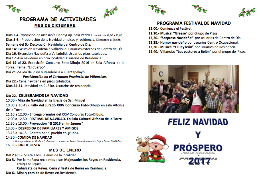 Registrarse ¡Bienvenido! Ingresa en tu cuenta tu nombre de usuario tu contraseña ¿Olvidaste tu contraseña? consigue ayuda Recuperación de contraseña Recupera tu contraseña tu correo electrónico Se te ha enviado una contraseña por correo electrónico. La Navidad llega a Apadefim Cuéllar Fecha: 12 de diciembre de 2016 Compartir: FacebookXPinterestWhatsApp - Advertisement - Desde el 2 de diciembre y hasta el 2 de enero, los Centros de la Fundacion Personas en Cuéllar, se visten de Navidad con ditintas actividades, como excursiones, exposiciones, cenas… A continuación podeis encontrar la programación al completo. TagsApadefimCuéllarfestival de navidadFundación PersonasNavidad Artículo anteriorEn enero comienza el juicio oral por presuntos abusos sexuales a una menorArtículo siguienteGran éxito del «I Encuentro de Garantía Juvenil» El Ayuntamiento atribuye a la falta de mantenimiento las inundaciones en el mercado de la Albuera En portada Las Colonias Internacionales de La Granja como espacios de conocimiento y colaboración Educación La AEMET mantiene el aviso amarillo por tormentas durante el fin de semana en la provincia de Segovia Environment Corte de tráfico en la carretera provincial SG-P-7223 en la próxima semana Nuestros Pueblos - Tu Provincia Así ha vivido la empresaria Henar García la tormenta que ha anegado su puesto en el mercado de La Albuera En portada Publicidad Artículos Relacionados En portada Las fuentes del Palacio Real de La Granja, ‘pasadas por agua’ Las fuentes monumentales del Palacio Real de la Granja de San Ildefonso se encuentran, desde el pasado 17... En portada El Ayuntamiento atribuye a la falta de mantenimiento las inundaciones en el mercado de la Albuera El Ayuntamiento de Segovia atribuye a la falta de mantenimiento por parte de la asociación de comerciantes las... Educación Las Colonias Internacionales de La Granja como espacios de conocimiento y colaboración La Real Academia de Historia y Arte de San Quirce celebra, durante numerosas jornadas, el XLVII Curso de... Environment La AEMET mantiene el aviso amarillo por tormentas durante el fin de semana en la provincia de Segovia Todo el territorio de las provincias de Segovia, Ávila, Salamanca y Valladolid, así como las mesetas de Burgos...