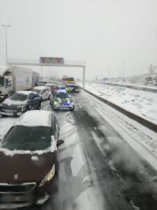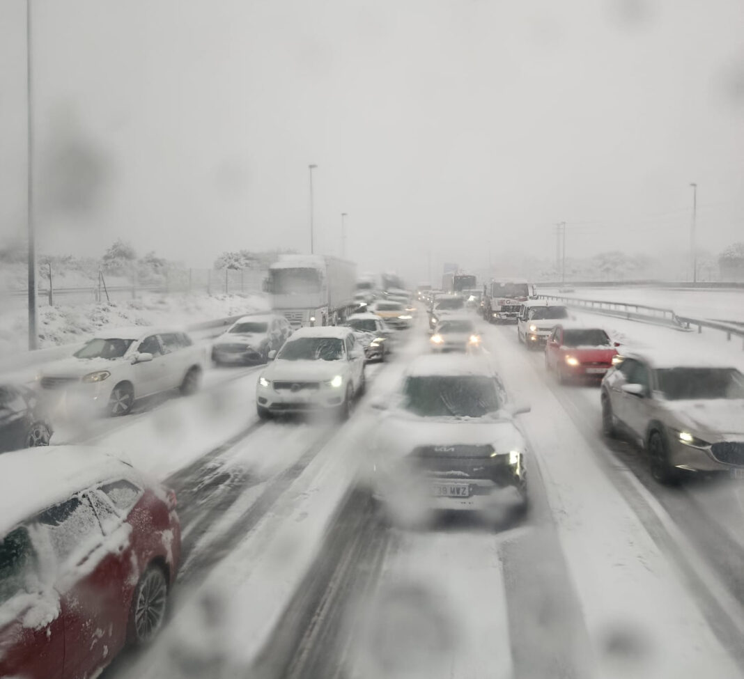 La situación más complicada se vive en la A-6, una de las principales vías de acceso a la Comunidad de Madrid, donde decenas de coches, camiones y autobuses han quedado atrapados a causa de la nevada, lo que ha provocado largas retenciones y la paralización del tráfico durante horas.