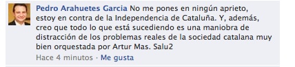 No es la primera vez que el alcalde de Segovia, Pedro Arahuetes, utiliza sus redes sociales para mostrar su opinión sobre diversos temas. Caracterizado por su extensa participación en la red social Facebook, hoy el primer edil de la capital segoviana ha mostrado su postura en contra de la independencia de Cataluña tras ser preguntado por uno de sus seguidores, residente en Girona.