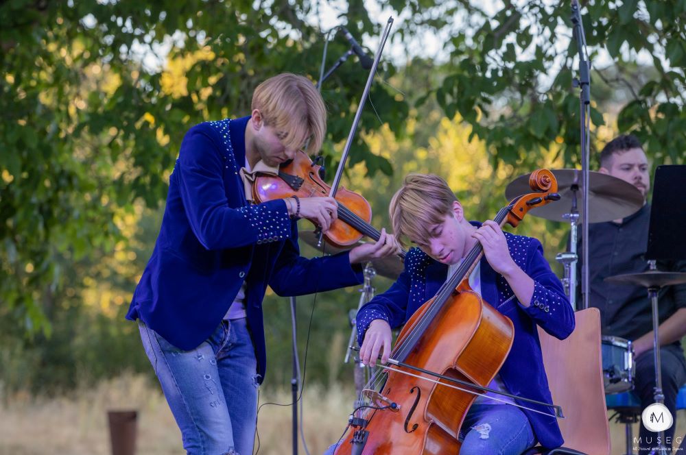 Los Violincheli Brothers, finalistas de Got Talent España 2021 y recién llegados de su gira por Uruguay, fueron los encargados de poner música al atardecer que se podía disfrutar desde la pradera de la Ermita de la Adrada de Otero de Herreros, fusionando clásica, rock y pop, desde Vivaldi a Sting o Alejandro Sanz.