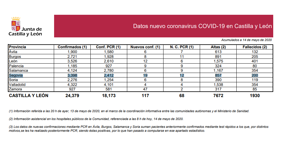 En total, son ya 3.398 las personas diagnosticadas en Segovia. La cifra de contagios en las últimas 24 horas es de 19, un nuevo aumento en los casos positivos con respecto a los últimos días.